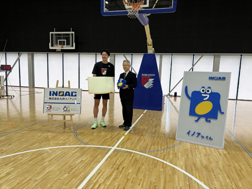 九州イノアックの飯田社長よりライジングゼファーフクオカのキャプテン、