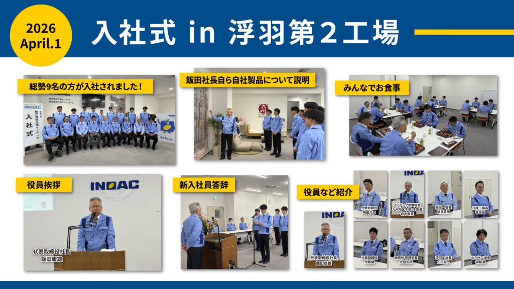株式会社九州イノアックは、2026年4月1日(水)に浮羽第2工場にて「2026年度 入社式」を